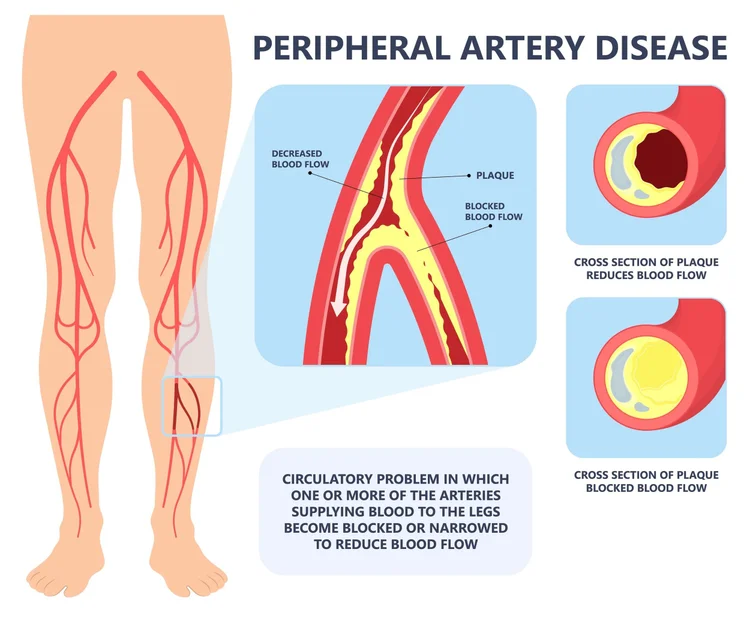 This causes poor circulation and reduced blood flow to the calf and foot.